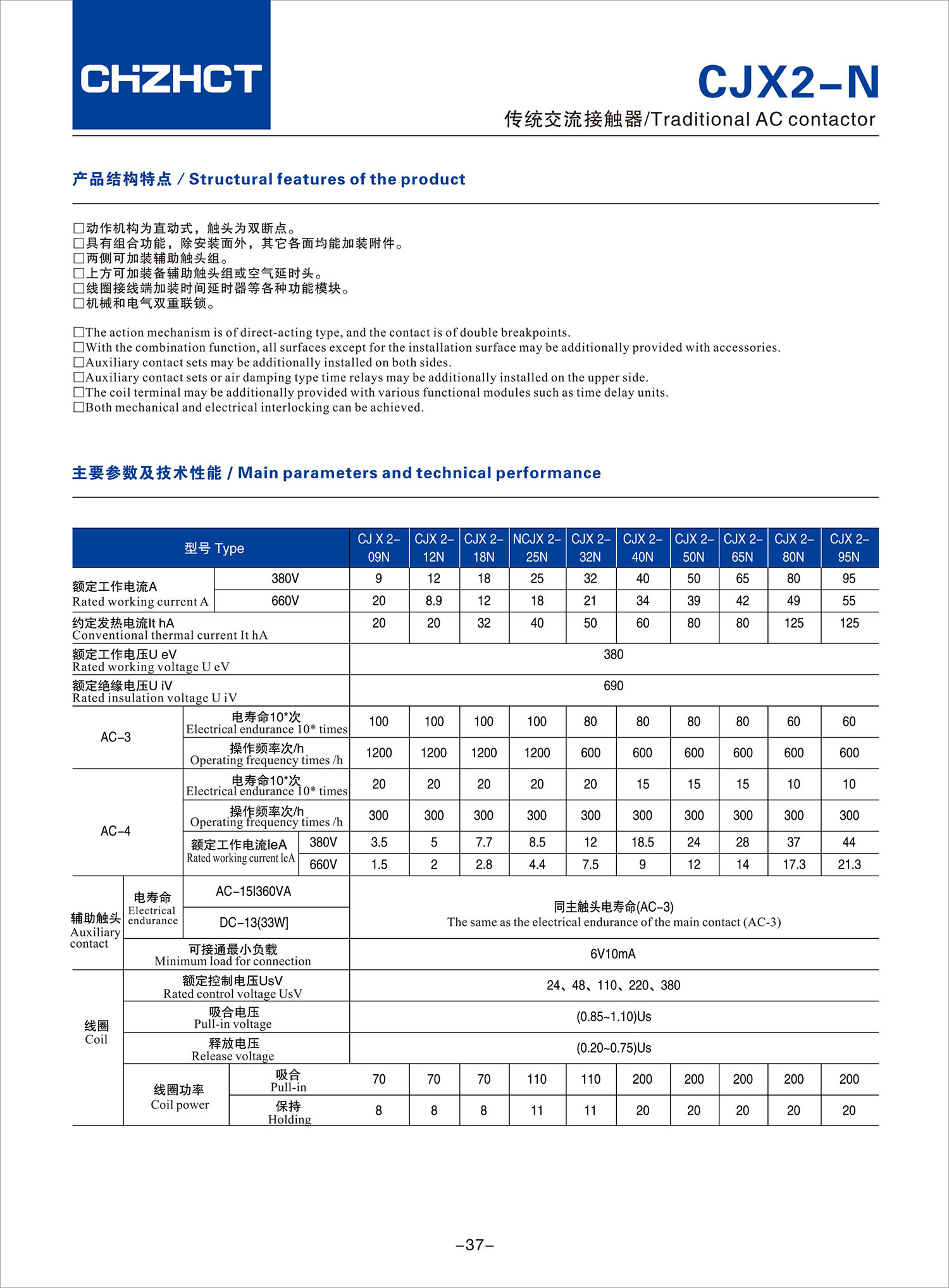 CJX2-N传统交流接触器产品说明书