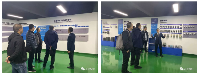 鞍钢集团一行首先参观了正火股份工控开关生产线,全方位地了解企业技术研发、生产线转型升级情况,听取了生产经理董贵锋对生产线合理设计情况的介绍,就智能制造、自动化生产等话题与董事长刘献强进行现场交流。
