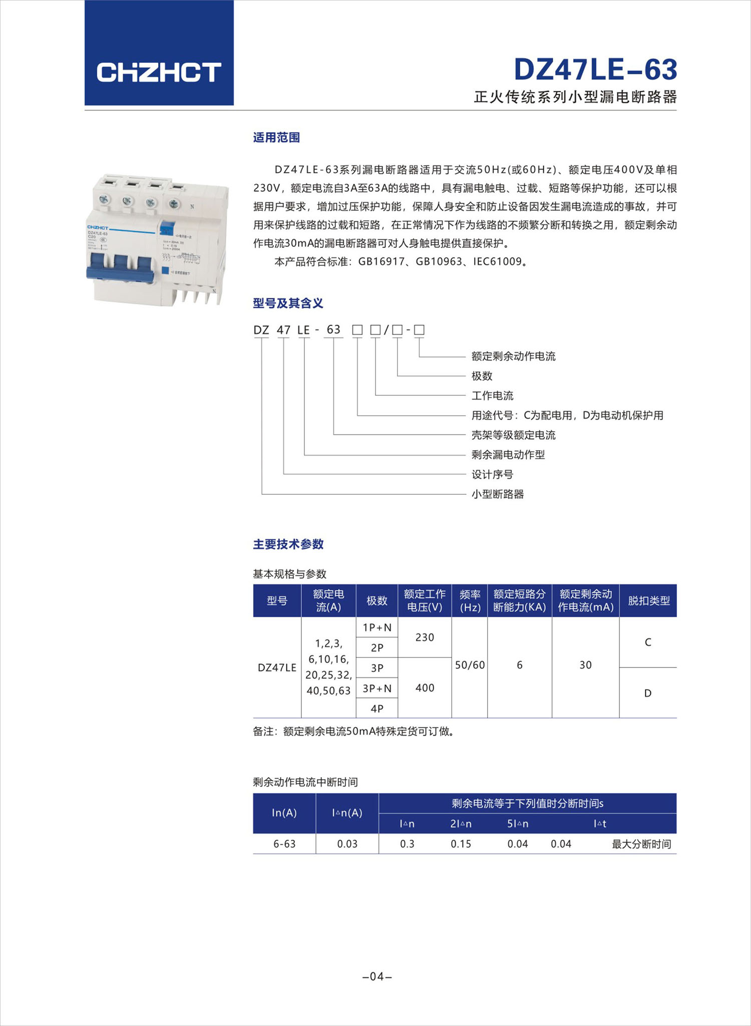 DZ47LE-63 小型漏电断路器产品说明书