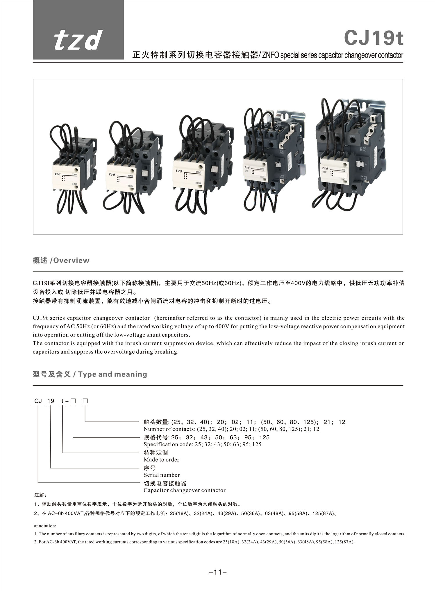CJ19t 正火特制系列切换电容器接触器产品说明书