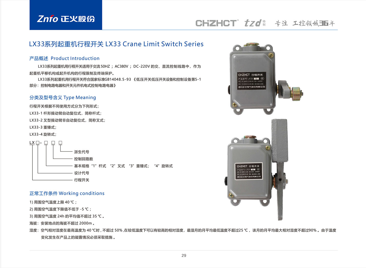 LX33系列起重机行程开关产品说明书