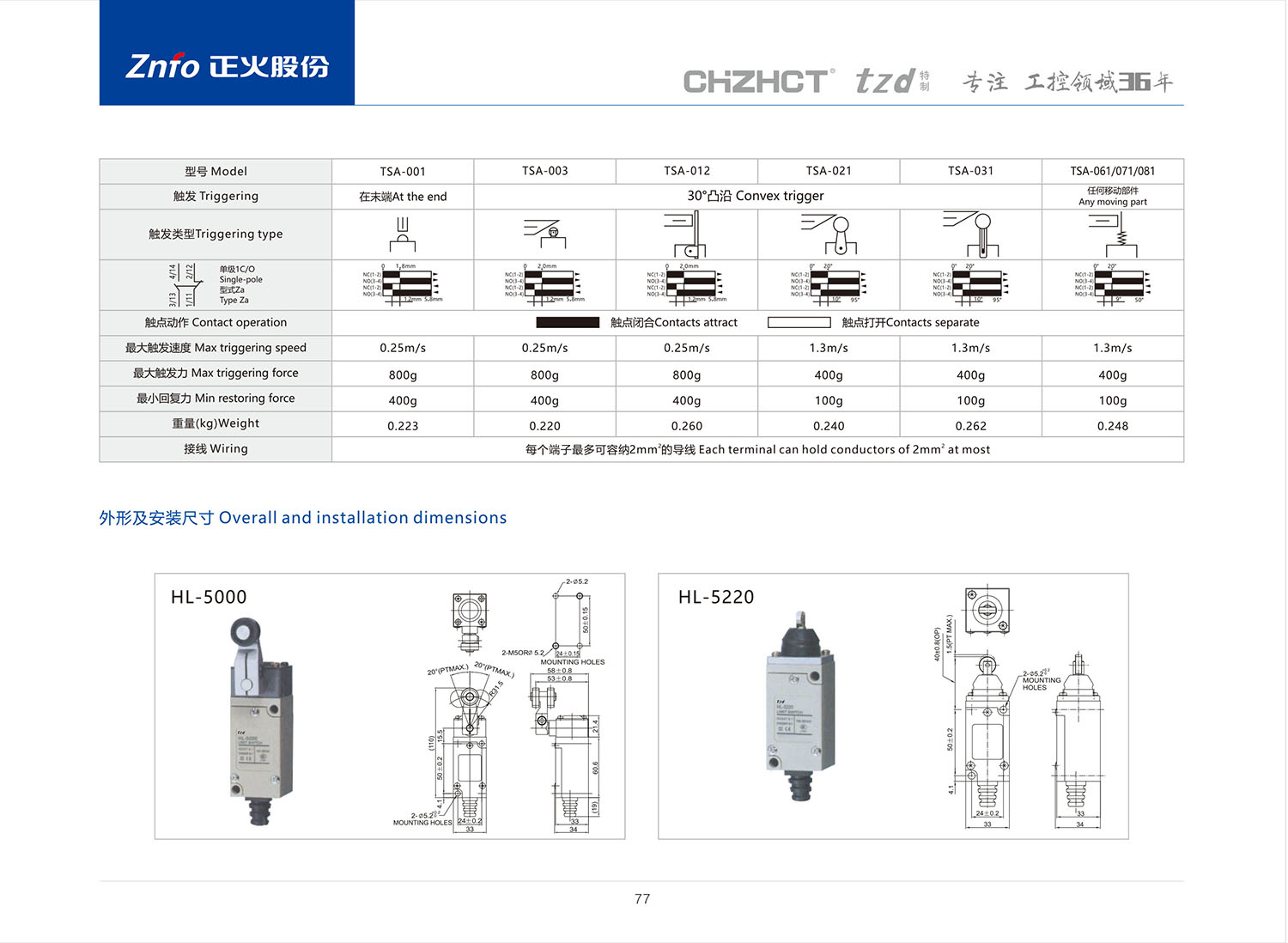 HL 限位开关产品说明书